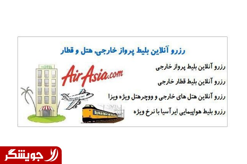 رزرو انلاین هتل های خارجی و ووچر هتل ویژه ویزا رزو بلیط هواپیما ایر اسیا با نرخ ویژه رزرو انلاین بلیط پرواز خارجی رزرو انلاین بلیط خارجی قطار