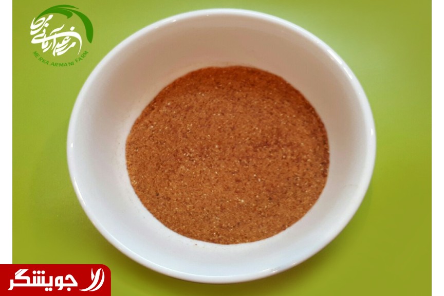 مزرعه آرمانی مرکا تولید کننده پودر گوجه فرنگی خشک از گوجه های محلی خطه کردستان تهیه شده که بسیار ریز و ترش و شیرین می باشد وبدون هیچ افزودنی تنها از آفتاب ناب کوهستان بهره برده و آسیاب شده است