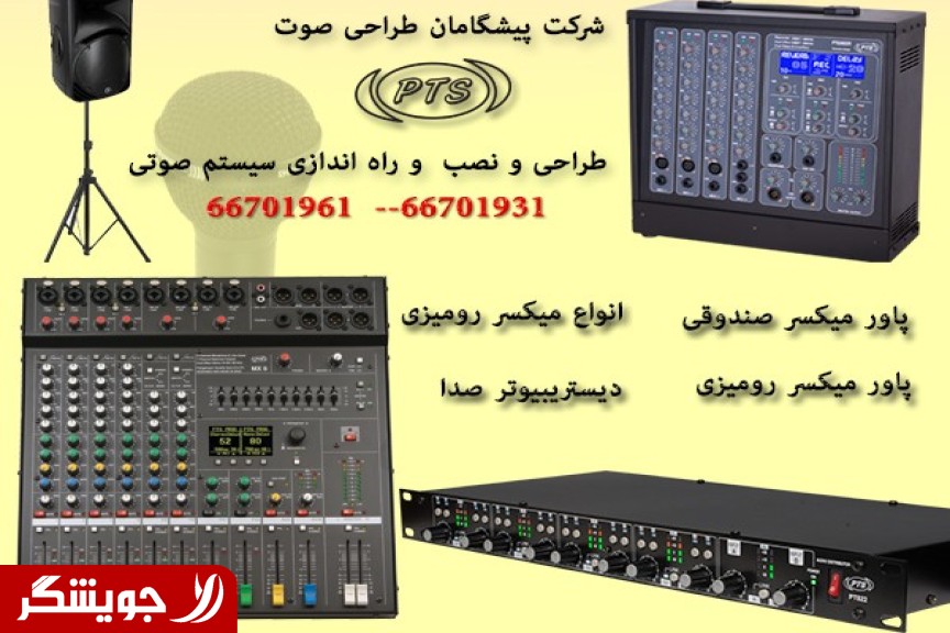 شرکت پیشگامان طراحی صوت PTS"" : طراح و تولید کننده سیستمهای صوتی حرفه ای شامل : پاور صندوقی ، پاور میکسر صندوقی ، اکو میکسر پینگ پونگی ، اکو میکسر برخی محصولات این شرکت : میکسر 4 کانال MX4 - میکسر 8 کانال MX8 - میکسر MC8 - اکو میکسر صندوقی - اکو میکسر با افکت پینگ پونگی – دیستریبیوتر صدا PT822 و .... خدمات شرکت شامل : طراحی ، نصب و راه اندازی سیستم های صوتی طراحی سیستم صوت سالن های آمفی تئاتر ، سالنهای همایش ، سخنرانی طراحی و نصب و اجرای سیستم صوتی مساجد ، هیئت های مذهبی ، حسینه ها طراحی و نصب سیستم صوتی پارک ها و مراکز فرهنگی طراحی، اجرا و پشتیبانی کلیه پروژه های سیستم های صوت سیستم کامل هیاتی جهت مساجد و تکایا اجرای پروژه های چند صدایی همزمان جهت موزه ها و مراکز فرهنگی مشاوره، طراحی ،نصب و راه اندازی سیستمهای صوتی و تصویری اجرای مراسمات زنده با بهترین برندهای دنیا مشاوره و طراحی سیستم های صوتی مخصوص فضاهای باز و بسته پارک ها ترجمه همزمان جهت کنفرانسهای بین اللملی ،سمینارها ، افتتاحیه ها و... طراحی اختصاصی سیستم های کنفرانس نصب و راه اندازی کنسول های کنفرانسی رومیزی جهت سمینارها طراحی اختصاصی سیستمهای صوتی جهت تولید کنندگان سیستم صوتی شامل : میکسر صدا به صورت سفارشی ، افکتور صدا ، آمپلی فایر پرقدرت ، دیستریبیوتر و ..... دیگر تلفظ ها : پاور میکسر ,پاور میکسر صندوقی ,اکو میکسر پینگ پونگی ,اکو میکسر ,پاور میکسر حرفه ای, پاور میکسر ایرانی،اکو صندوقی, اکو صندوقی ایرانی , میکسر رومیزی , سیستم صوتی هیئت , طراحی سیستم صوتی هیئت , طراحی سیستم صوتی مساجد