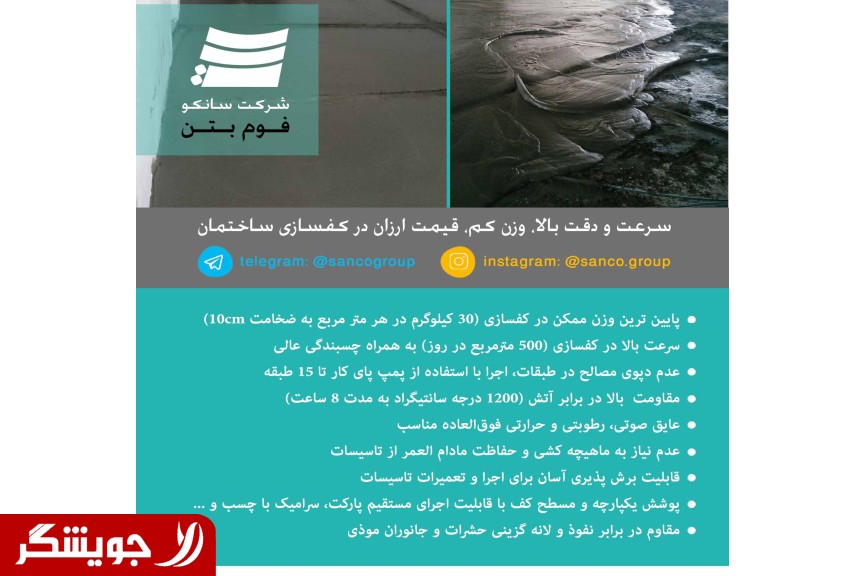 اجرای فوم بتن کف طبقات و شیب بندی پشت بام - شرکت سانکو