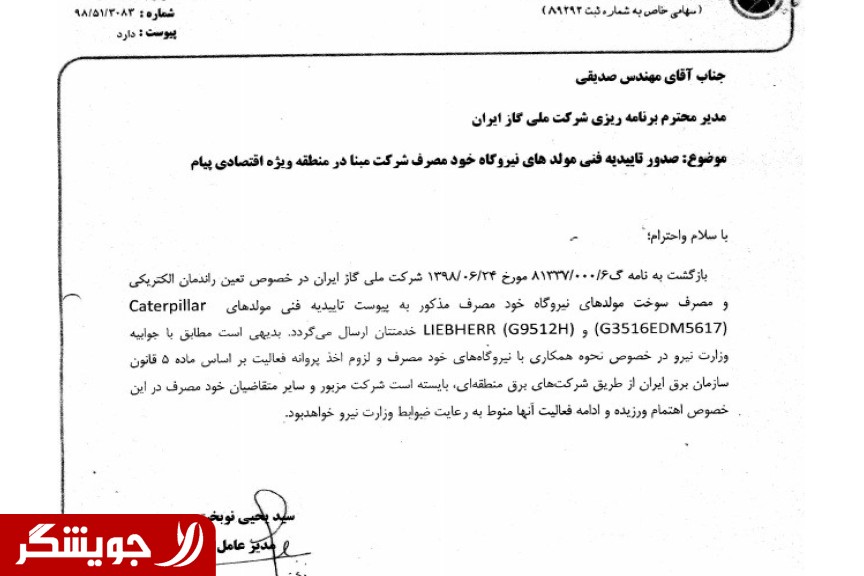 مولد گازسوز 4 دستگاه جمعا حدود 5.5 مگا وات