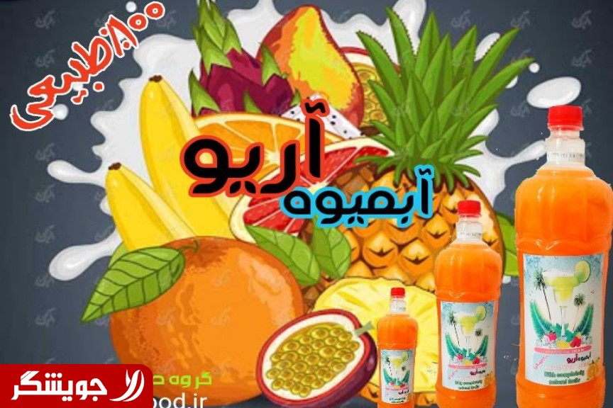 محصولی جدید از گروه صنایع غذایی آریا یک آبمیوه 100 % طبیعی از میوه ها با طعم های : پرتقال / انگور / بلوبری / پاپایا / سیب / انار / آناناس / هلو / انبه / آواکادو / کرمبری آبمیوه 100 % طبیعی بدون مواد نگهدارنده ..