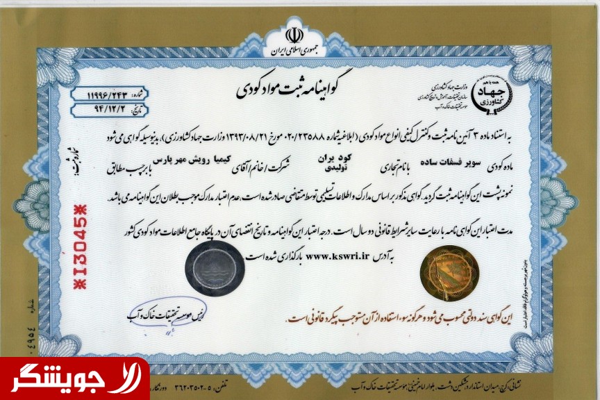 | شرکت | کیمیا رویش مهر پارس ( کودیران ) |
