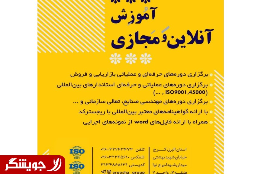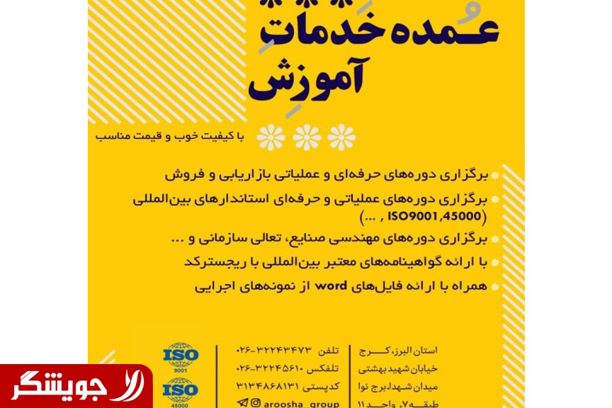 مشاوره ایزو ، استقرار و آموزش استاندارد iso 9001: 2015 استقرار سیستم مدیریت کیفیت ارائه گواهینامه های بین المللی با رجیستر کد ارائه خدمات مشاوره و مجری طرح با روش های نوین با پشتیبانی کامل وجه تمایز ما: پیگیری سیستماتیک،همچنین ارائه گزارشات، پاسخگویی به موقع و تحویل مناسب خدمات پس از فروش تا 2 سال، تضمین اخذ گواهینامه بین المللی و ارائه فایل جامع Access برای کسب اطلاعات بیشتر با ما تماس حاصل فرمایید .