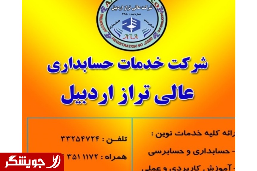 شرکت حسابداری عالی تراز اردبیل متشکل از تیمی کارشناس زبده دارای تجربیات مکفی و سابقه 30 ساله و رزومه مفید مفتخر است خدمات مشروحه ذیل را به اشخاص حقیقی و حقوقی ارائه نماید : 1- ارائه کلیه امور مربوط به حسابداری مالی ، پیمانکاری ساختمان ، تولیدی و خدماتی 2- حسابرسی داخلی شرکتها و بازرس قانونی 2 - آموزش کاربردی حسابداری و نرم افزارهای رایج حسابداری 3 - فروش و راه اندازی نرم افزارهای رایج حسابداری 4 - راه اندازی سیستمهای حسابداری 5- تنظیم اظهارنامه مالیاتی و ارزش افزوده و خرید و فروش فصلی 6- تهیه صورتحسابهای مالی جهت ارائه به بانکها 7 - تنظیم لیست های دستمزد جهت ارائه به سازمانهای تامین اجتماعی و دارائی 8- تهیه لوایح و دفاعیه های مالیاتی ، قانون کار ، بیمه و حضور در هیات حل اختلاف مربوطه تا حصول نتیجه 9- مشاوره مالی ، روابط کار 10- تامین نیروی انسانی زبده و حاذق 11- ارائه مشاوره مالی رایگان جهت اخذ تخفیف جرائم مالیاتی و بیمه