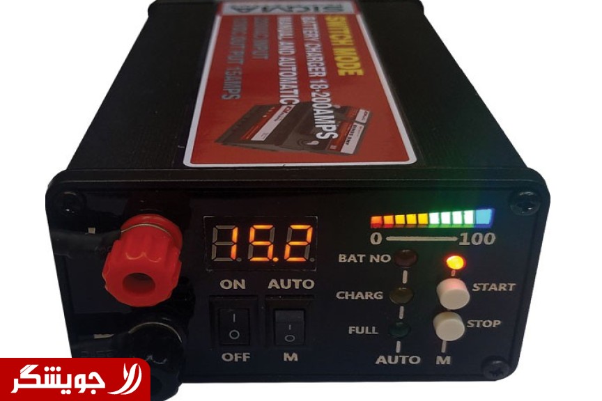 این شارژر دارای شارژ اتوماتیک و هم شارژر دستی با صفحه نمایش دیجیتالی ولتاژ خروجی و نشانگر درصد شارژ باتری دستگاه هست.