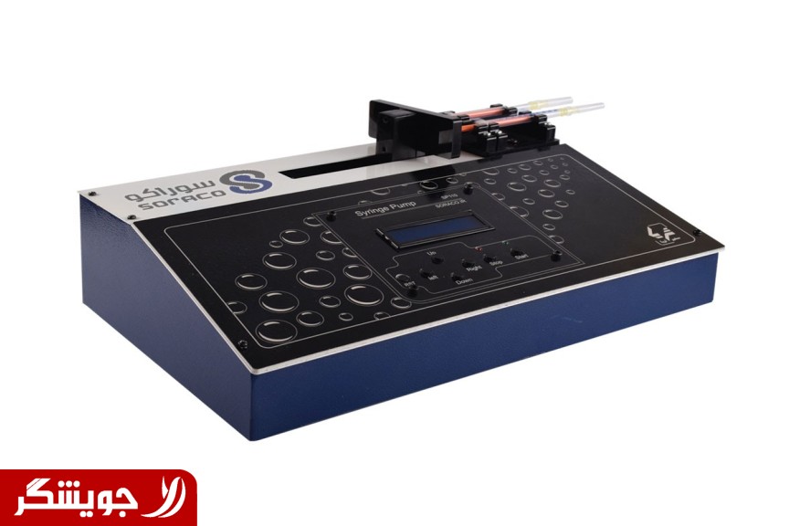 موارد استفاده: تزریق دقیق، کنترل شده و قابل برنامه ریزی مایعات تهیه امولسیون ها و کلوییدهای مختلف محلول های شیمیایی با نسبت استوکیومتری دقیق کنترل سینتیک فرایند شیمیایی با کنترل دبی پیش ماده ها مشخصات قابلیت تنظیم مقدار دبی جریان از 0.002 ml/min تا 140 ml/min (در سرنگ های مختلف) قابلیت تنظیم حجم تزریق با دقت 0.002 میلی لیتر قابلیت تعویض سرنگ و استفاده از سرنگ های مختلف امکان استفاده از دو سرنگ همزمان با حجم های مختلف ذخیره آخرین تنظیمات در حافظه فشار پمپ 2 بار (سیال آب در دمای 30 درجه سانتیگراد) صفحه نمایش جهت نشان دادن پارامترهای مختلف قبل و در هنگام تزریق تنظیم خودکار دور موتور