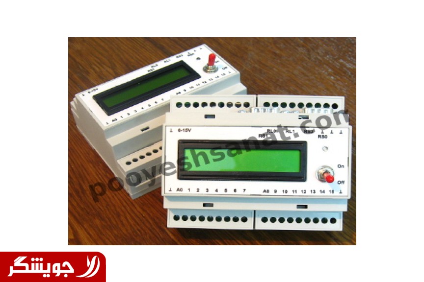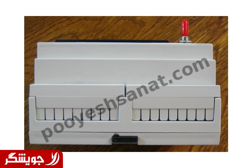 قابلیتهای ثَبّات داده (دیتالاگر) 16 کانال: • 16 کانال ورودی آنالوگ و دیجیتال • ورودیهای قابل تنظیم برای 0-2.5 ولت و 4-20 میلیآمپر • قابل اتصال به ترموکوپل نوع K و حسگر دمای PT100 • ورودی دادهی RS232 • پذیرش کارت حافظه با ظرفیت بالا • نمونهبرداری سریع • تنظیم هشدار خروجی برای تمام کانالها • قابل نصب بر روی ریل استاندارد DIN • قابل برنامهریزی به زبان C (کامپایلر C، کتابخانه مربوط به دستگاه، کدمنبع دستگاه و نرمافزار بارگذاری کد روی دستگاه به همراه دستگاه ارائه میشود) • قابل کنترل از راه دور از طریق مودم و پیامک (SMS) • قابل گسترش از شبکه RS485 • قابل نصب به نمایشگر گرافیکی LCD رنگی 5.7 اینچ TFT لمسی مشخصات فنی ثَبّات داده (دیتالاگر) 16 کانال سریع: زمان نمونهبرداری قابل تنظیم بین ms1 تا 24 ساعت (حداکثر 1000 نمونه در ثانیه) دقت تبدیل 24 بیت نمونه برداری«ms10 نمونه برداری«ms100 نمونه برداری»ms100 16 بیت 18 بیت 19 بیت تعداد کانالهای ورودی آنالوگ 16 کانال زمین مشترک یا 8 کانال تفاضلی تعداد کانالهای ورودی دیجیتال 16 کانال (پایههای مشترک با ورودیهای آنالوگ) تعداد کانالهای قابل گسترش از RS485 84 کانال اضافی تعداد ورودی RS232 1 کانال مقاومت الکتریکی ورودی kΩ65 دامنه ولتاژ آنالوگ ورودی 100- تا 1300 میلیولت مستقیم و 33- تا 405 ولت با مقاومتهای داخلی تعداد هشدارها به ازای هر کانال انواع هشدار قطع و وصل یک رله نوشتن هشدار در حافظه تماس با یک شماره تلفن خاص از طریق مودم ارسال پیامک یا ارتباط از طریق مودم GSM نوع دادههای قابل ذخیرهسازی ورودی آنالوگ: 0-2.5 ولت، 4-20 میلیآمپر ورودی دما: ترموکوپل نوع K، حسگر PT100 ورودی دیجیتال: 0/5 ولت، RS232 ورودی شمارنده نوع کارت حافظه miniSD حداکثر ظرفیت حافظه حداکثر تا GB2 تغذیه منبع تغذیه 5 تا 16 ولت (رگوله نشده کافیست) انواع خروجی: هشدار دیجیتال، SMS (درصورت وجود ماژول GSM)، تلفن (در صورت وجود مودم)، نوشتن روی سروِر FTP در اینترنت (در صورت وجود مودم خاص) تنظیمات برنامهریزی توسط کاربر به زبان C تنظیم از طریق پیامک SMS (درصورت وجود ماژول GSM) تنظیم از طریق خط تلفن (در صورت وجود مودم)