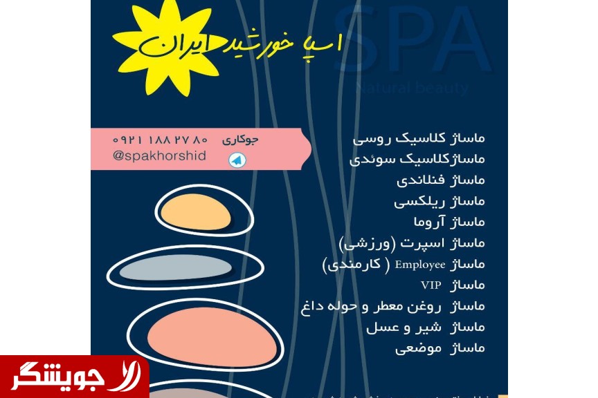 ارائه انواع ماساژ حرفه ای ویژه اقایان ماساژ کلاسیک ماساژ کلاسیک روسی ماساژ کلاسیک سوئدی ماساژ فلاندی ماساژ ریلکسی ماساژ آروما ماساژ اسپرت ورزشی ماساژ کارمندی ماساژ vip ماساژ روغن معطر و حوله داغ ماساژ شیر عسل ماساژ موضعی اسپا خورشید ایران