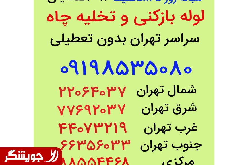 لوله بازکنی و تخلیه چاه تمام نقاط تهران (در پایین آگهی) شبانه روز بدون تعطیلی درآورد اشیاء از لوله ها مانند گوشی وطلا وغیره لوله بازکنی سعادت آباد لوله بازکنی بلوار دریا لوله بازکنی بلوار دادمان لوله بازکنی میدان سرو لوله بازکنی میدان کاج لوله بازکنی بلوار دریا لوله بازکنی بلوار پاکنژاد لوله بازکنی ایران زمین لوله بازکنی فرحزادی لوله بازکنی زرافشان لوله بازکنی میدان کتاب لوله بازکنی میدان بوستان لوله بازکنی فلامک لوله بازکنی مهستان لوله بازکنی ایران زمین لوله بازکنی بلوار درختی لوله بازکنی خوردین لوله بازکنی شهرک غرب لوله بازکنی بلوار انقلاب لوله بازکنی ایوانک لوله بازکنی گل افشان لوله بازکنی میدان صنعت22064037 لوله بازکنی ونک لوله بازکنی گاندی لوله بازکنی ولیعصر لوله بازکنی آفریقا لوله بازکنی ملا صدرا لوله بازکنی شیخ بهایی لوله بازکنی شیرازی لوله بازکنی سئول لوله بازکنی ملاصدرا لوله بازکنی گاندی لوله بازکنی ولیعصر لوله بازکنی آفریقا لوله بازکنی حقانی لوله بازکنی میرداماد لوله بازکنی توحید لوله دستگردی لوله بازکنی سایه لوله بازکنی مدرس لوله بازکنی شریعتی لوله بازکنی زرگنده لوله بازکنی حسن آباد لوله بازکنی رسالت لوله بازکنی سیدخندان لوله بازکنی یخچال لوله بازکنی دیباجی لوله بازکنی صدر لوله بازکنی دولت لوله بازکنی کاوه لوله بازکنی سهروردی لوله چهار راه پارک وی لوله بازکنی بلوار دریا 88554468 لوله بازکنی جنت آباد لوله بازکنی شهرک نفت لوله بازکنی قلهک لوله بازکنی کلاهدوز لوله بازکنی اختیاریه لوله بازکنی پاسداران لوله بازکنی گلستان لوله بازکنی شاهین لوله بازکنی اشرافی لوله بازکنی صادقیه لوله بازکنی سازمان اب لوله بازکنی جلال آل احمد لوله بازکنی کوی فراز لوله بازکنی شمال تهران لوله بازکنی جنوب تهران لوله بازکنی شرق تهران لوله بازکنی غرب تهران بلوار فردوس (در پایین آگهی) لوله بازکنی پونک لوله بازکنی سیمون بولیوار لوله بازکنی اشرفی اصفهانی لوله بازکنی شقایق لوله بازکنی سردار جنگل لوله بازکنی ستاری لوله بازکنی شهر زیبا لوله بازکنی شهران لوله بازکنی بلوار لاله لوله بازکنی بلوار عدل لوله بازکنی مخبری لوله بازکنی باغ فیض لوله بازکنی شاهین لوله بازکنی کند 44432584 لوله بازکنی شاهین جنوبی لوله بازکنی چهار باغ شرقی لوله بازکنی مرزداران لوله بازکنی فلکه صادقیه لوله بازکنی سازمان اب لوله بازکنی جلال آل احمد لوله بازکنی کوی فراز لوله بازکنی بلوار اباذری لوله بازکنی شهرک فرهنگیان لوله بازکنی بلوار فردوس لوله بازکنی کاشانی لوله بازکنی آریا شهر لوله بازکنی تهرانسر لوله بازکنی جاده مخصوص لوله مهرآباد شبانه روزی لوله بازکنی دهکده المپیک لوله بازکنی نواب صفوی لوله بازکنی شهرک شهرداری لوله بازکنی چیتگر لوله بازکنی پیکان شهر لوله بازکنی ستارخان لوله بازکنی گلاب لوله بازکنی حبیب الهی لوله بازکنی دریا نو44073219 لوله بازکنی ستارخان لوله بازکنی بلوار شقایق لوله بازکنی گیشا لوله بازکنی امیر آباد لوله بازکنی یوسف آباد لوله بازکنی فاطمی لوله بازکنی کارگر لوله بازکنی انقلاب لوله بازکنی فلسطین لوله بازکنی آپادانا لوله بازکنی اکباتان لوله کوی بیمه لوله بازکنی سهروردی لوله بازکنی مطهری (در پایین آگهی) لوله بازکنی آزادی ستارخان طرشت شبانه روزی بدون تعطیلی بازدید رایگان 66080270 (در پایین آگهی)