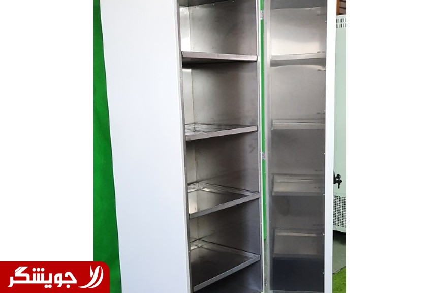 مشخصات فنی کمد نگهداری مواد نور صنعت فردوس : جنس بدنه از استیل ضد اسید ابعاد (عرضعمقارتفاع) (6050200) دارای 4 طبقه با فاصله ی 44 سانتی متر دارای فن جهت تخلیه بخورات موجود در کابین یا بخار های حاصل از واکنش مواد شیمیایی مجهز به قفل جهت ایمنی مجهز به دستگیره اتومات