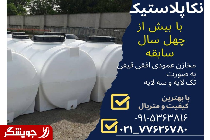 شرکت نکاپلاستیک با بیش از چهل سال سابقه تولید کننده مخازن پلی اتیلن با بهترین کیفیت و مواد اولیه مرغوب مخازن پلی اتیلن از 50 لیتر تا 30 هزار لیتر مخازن نکاپلاستیک برای نگهداری آب مواد شیمیایی و اسید به صورت تک لایه و سه لایه مخازن (عمودی * افقی * قیفی ) مخازن (زیر پله ای * پشت نیسانی (تک سوز و دو گانه سوز ) ) مخازن (کلرزن * انبساط * سمپاش) وان های ( وان پرورش شیلات *چهار گوش گرد *وان تراف ) بانکه های نساجی در ابعاد مختلف