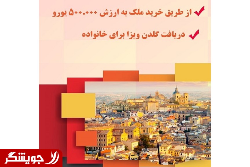 "آیا از مزایای اخذ گلدن ویزای اسپانیا با خبر هستید؟ داشتن حق سکونت در کشور اسپانیا. امکان سفر نا محدود به کشورهای حوزه شنگن. امکان دریافت ویزای مولتی و اقامت برای تمامی افراد خانواده. عدم نیاز به اشتغال و یا راه اندازی کسب و کار در اسپانیا. امکان دریافت اقامت موقت و سپس اقامت دائم اروپا. معاف بودن از پرداخت مالیات سالانه. امکان افتتاح حساب در بانکهای اروپایی. امکان تحصیل رایگان فرزندان در کشور اسپانیا، بلافاصله پس از اقامت در اسپانیا. سهولت در اخذ ویزای دیگر کشورها. امکان اخذ اقامت دائم کشوراسپانیا پس از 5 سال . امکان اخذ تابعیت کشور اسپانیا پس از مدت 10 سال اقامت قانونی بدون وقفه در این کشور. همه این مزایای تنها با خرید یک ملک به ارزش 500 هزار یورو در کشور اسپانیا امکانپذیر است. برای کسب مشاوره تخصصی سرمایه گذاری ملکی و مهاجرت به اسپانیا با کارشناسان ما در تماس باشید. شماره تماس دفتر تهران : 02186087151 http://www.eusecondhome.com"