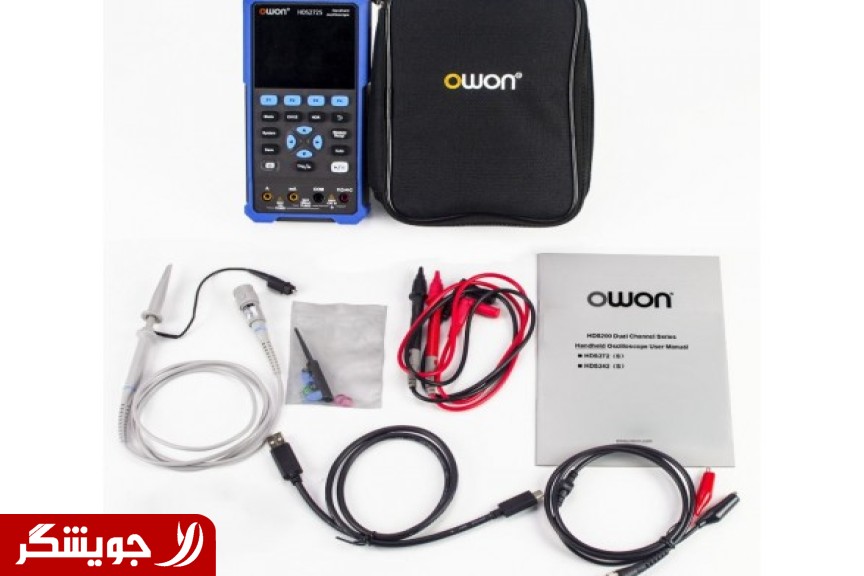 اسیلوسکوپ پرتابل 70MHz دوکاناله فانکشن ژنراتور دستی مولتیمتر HDS272S ساخت OWON اسکوپ 70MHz دوکانال به همراه مولتیمتر و فانکشن ژنراتور دستی HDS272S یکی از کلیدی ترین تجهیزات برای طراحان، تولیدکنندگان مدارا ت الکترونیکی و تعمیر کاران تجهیزات برق و الکترونیک جهت بررسی دامنه، فرکانس، اختلاف فاز، زمان تناوب، بررسی عملکرد نیمه هادی ها در مدار و … می باشد. از مهم ترین مشخصات این دستگاه میتوان به قابلیت شارژ باطری ( باطری جدا تهیه گردد) آن توسط پاور بانک و آدابتور با طول عمر 4 ساعت استفاده ی مداوم ، اتصال به کامپیوتر و پشتیبانی از نرم افزار SCPI،امکان اتصال Flash USB، صفحه نمایش رنگی 3.5 اینچی، وزن کم، حافظه به طول ثبت 8K، قابلیت اندازه گیری اتوماتیک لوازم جانبی کامل آن اشاره نمود.