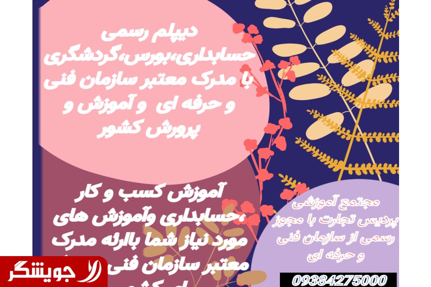 محتمع آموزشگاهی با مجوز رسمی از سازمان فنی و حرفه ای کشور در حوزه بازارهای مالی و حسابداری ، فناوری اطلاعات،زبان انگلیسی، دیپلم رسمی حسابداری،کامپیوتر و گردشگری فعالیت می نماید.
