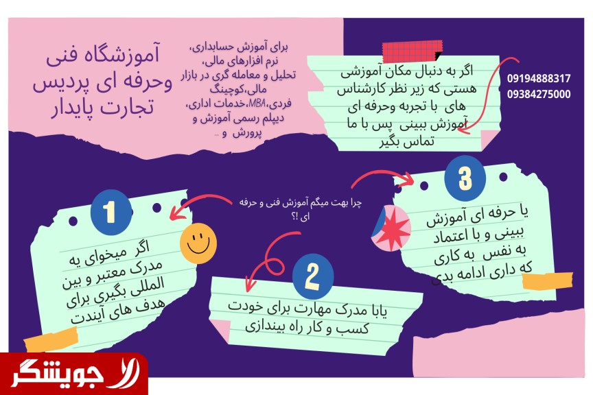 اطلاعات تماس: آموزشگاه فنی وحرفه ای پردیس تجارت پایدار