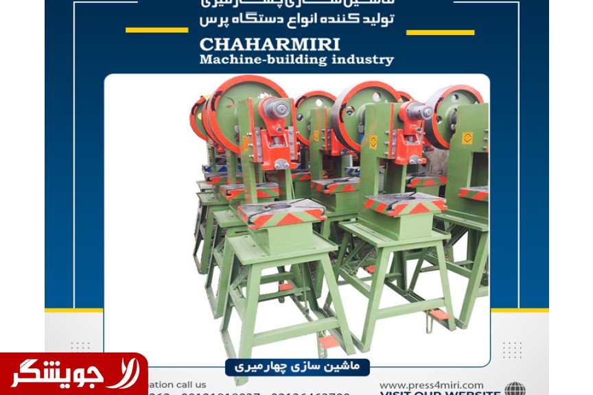 ماشین سازی چهارمیری از سال 1365 با هدف تولید انواع پرس های ضربه ای و دنده ای در تناژ 6 تن کار خود را آغاز نمود و این روند تا سال 1378 ادامه داشت تا اینکه با توسعه کارخانه شروع به تولید تناژهای بالا 3 تن تا 250 تن نمود و در همان سالها مجوز کار خود را از اتحادیه صنایع فلز تراشان دریافت نمود و با یاری خداوند متعال توانسته است امروز محصولات خود را به کشورهای عراق، بحرین، افغانستان، هرات، انگلستان، تاجیکستان، سلیمانیه، ترکیه صادر نماید و با دریافت iso از کانادا و فرانسه اطمینان خاطر را برای مشتریان خود فراهم نماید و ماشین سازی چهارمیری برآن است تا از طریق تولید محصولات ایرانی با کیفیت مطلوب و با قیمت مناسب خواسته های مشتریان را تامین کند. خدمات صنایع ماشین سازی چهارمیری(پرس سازی چهارمیری): سازنده انواع پرس های ضربه ای و دنده ای در ابعاد و تناژهایه مختلف از 2 تن الی 200 تن ساخت انواع پرس های سفارشی اعم از دهنه دار شکم دار و دماغه دار و بازی زیاد ساخت پرس ضربه ای مخصوص ظروف یک بار مصرف آلمینیوم نصب سیستم پنوماتیک (امنیتی) بر روی پرس ضربه ای و دنده ای تعمیرات انواع پرس ضربه ای در اسرع وقت تولید انواع پرس دستی در سایزهای مختلف ساخت انواع پرس هیدرولیک کارگاهی برقی و دستی ساخت انواع نقطه جوش و دوسر جوش ساخت انواع نورد چرخ حلبی درز کوب ساخت انواع دریل از سایز ام 16 الی 32 ساخت انواع قیچی گیوتین و خم کن در سایزهایه مختلف (نو و دسته دوم) از پیج اینستاگرامی ما دیدن فرمایید : mashinsazi_4miri