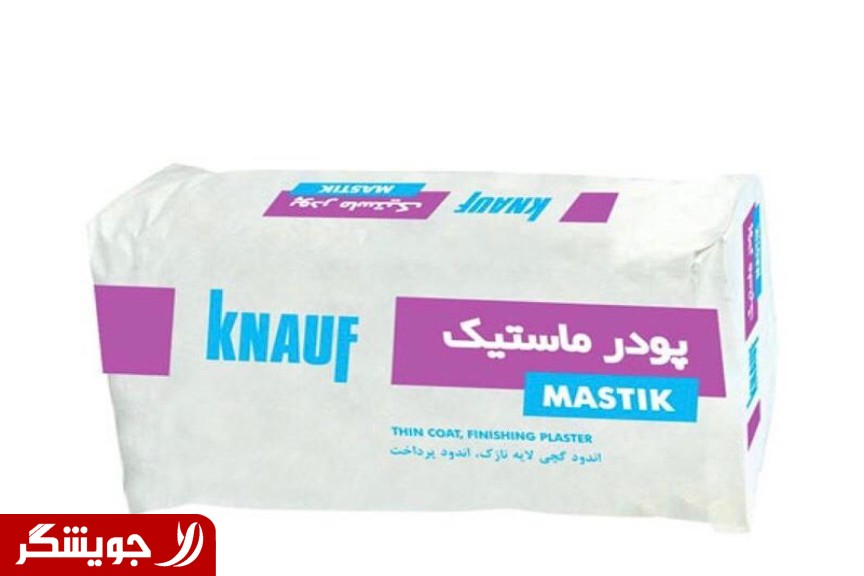 پوشش گچی لایه نازک، اندود پرداخت برای دستیابی به بهترین نتیجه در رنگ آمیزی، پس از عملیات درزگیری وقبل از رنگ آمیزی، یک لایه نازک پوششی (1تا 2 میلی متر) با ماستیک روی تمام سطح اجرا می شود. اجرای این لایه موجب پوشش امواج احتمالی در کل سطح کار شده و سطحی صاف و یکدست را بر روی پنل به وجود می آورد. موارد استفاده این محصول برای ایجاد یک سطح صاف و جلوگیری از ایجاد حالت سایه و روشن و نمایان شدن محل درزها (که حاصل اختلاف نوع مصالح زیر رنگ می باشد)، پس از عملیات درزگیری و قبل از رنگ آمیزی به کار می رود. دستور العمل اجرا آماده سازی و روش استفاده برای تهیه ماستیک ابتدا به میزان کافی آب بدون املاح در یک ظرف تمیز ریخته و سپس محصول را به تدریج و به آرامی به صورت پاششی داخل آب بریزید (به ازای هر 20 کیلوگرم پودر، 12 تا 14 لیتر آب نیاز است) پس از آن که پودر به آب اضافه شد 2 الی 3 دقیقه صبر نمایید تا پودر کاملا در آب خیس شود. سپس عمل مخلوط کردن را انجام دهید. پس از آن که ملات شکل گرفت 30 ثانیه منتظر بمانید و سپس مجددا عمل مخلوط کردن را ادامه دهید تا یک ملات یکدست مهیا گردد. ملات آماده را با یک ماله و یا لیسه، به صورت یک لایه نازک به ضخامت موردنظر روی صفحات روکش دار گچی اجرا نمائید. نکات اجرایی دمای محیط و سطح کار موردنظر نباید پایین تر از 5 و بالاتر از 40 درجه سانتی گراد باشد. سطح کار باید قبل از اجرا از هرگونه آلودگی، گرد و غبار و روغن تمیز گردد. ابزار کار و ظروف مورد استفاده برای مخلوط کردن باید کاملا تمیز باشد. در زمان شروع گیرش ملات، نباید آب و یا پودر به آن اضافه گردد. عوامل موثر در استحکام وجود هرگونه ناخالصی مانند نمک یا گچ و یا استفاده از آب با درجه حرارت بالا باعث کاهش زمان کارکرد و نیز استحکام ملات خواهد شد. میزان مصرف میزان مصرف ماستیک برای پوشش 1 متر مربع سطح به ضخامت 1 میلی متر، به طور تقریبی 800-1000 گرم بر مترمربع می باشد. اطلاعات بسته بندی: کیسه 20 کیلوگرمی شرایط انبار داری : کیسه ها در محل خشک، روی پالت ها و دور از رطوبت و تابش مستقیم نور خورشید نگهداری شود. تاریخ مصرف : 6 ماه پس از تولید و 7 روز پس از باز کردن کیسه