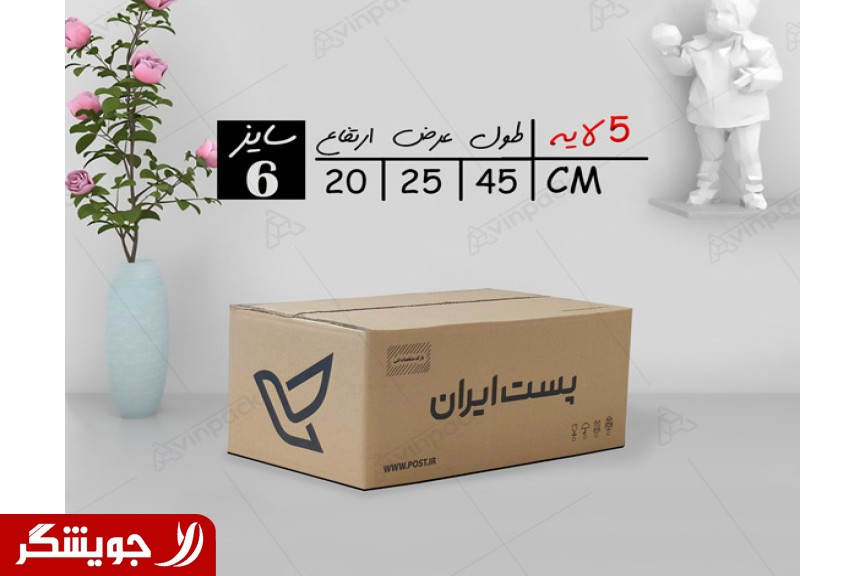 کارتن پستی سایز 6 پنج لایه چاپ دار و بدون چاپ طرح چاپ: عمومی پست ایران و یا خام بدون چاپ ابعاد: ارتفاع 20 در 45*25 طول و عرض مدل کارتن: چهار درب یا آمریکایی