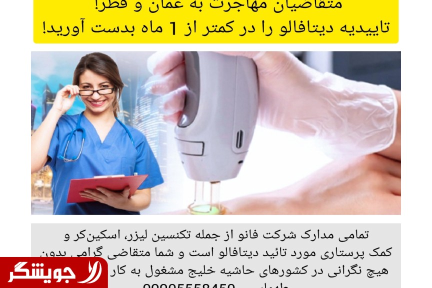 متقاضیان مهاجرت! یکماهه مراحل مهاجرت را طی کنید! تکنسین لیزر حذف موهای زائد از جمله شغلهای مورد استقبال در کشورهای حاشیه خلیج فارس از جمله قطر، عمان، دبی و... هست که از درآمد نسبتا خوبی نیز دارد. برای مثال در تاریخ 10/10 سال 1401 قیمت هر ریال عمان حدود 100هزارتومان است و حقوق تکنسین لیزر در این کشور حدود 500 ریال عمان، به عبارتی هرماه 50 میلیون تومان!