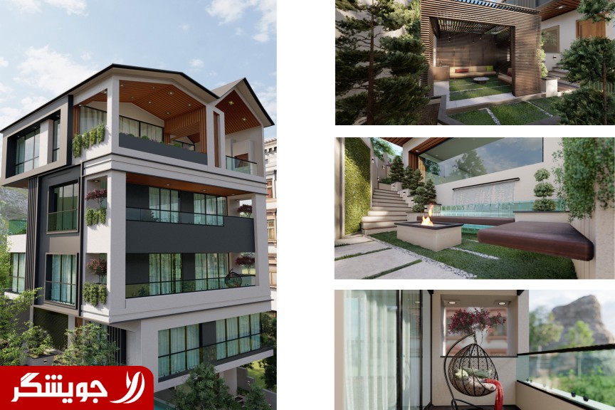 ساخت انیمیشن معماری از فضای باغ ویلا و محوطه به صورت روز و شب به درخواست کارفرمای محترم