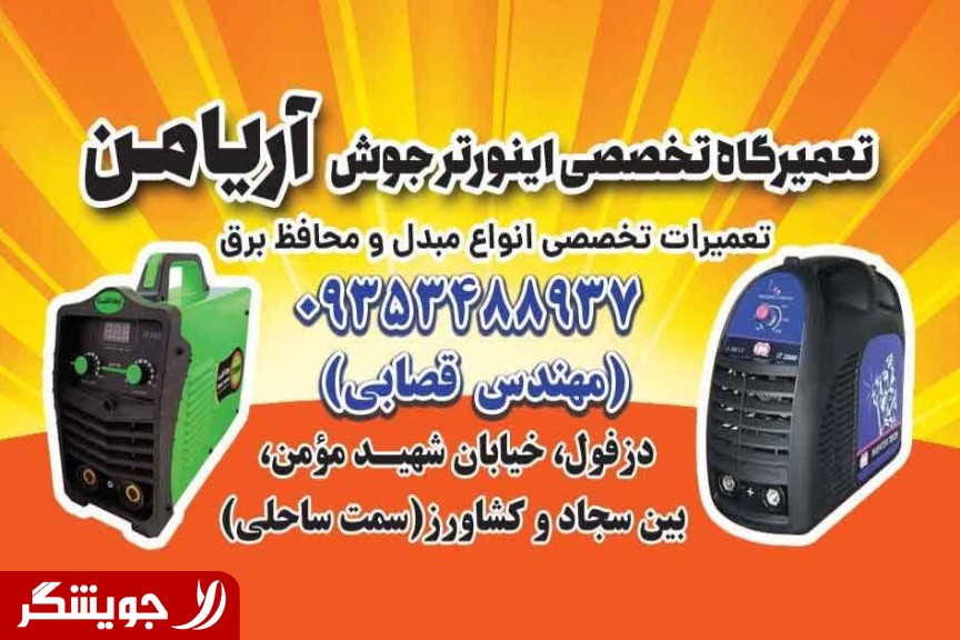با سلام تعمیرات تخصصی انواع دستگاه جوش اینورتر(تمامی برندهای ایرانی و خارجی)،دستگاه جوشکاری،تک فاز و 3فاز،دستگاه های جوش ترانسی(کوچک)،مبدل برق 12ولت به 220ولت،محافظ های کولر و یخچال،منابع تغذیه،پاور سوئیچینگ(تابلوهای روان وled)،گیرنده های دیجیتالی،شارژر های باتری ماشین،پنکه های دیجیتالی که ایراد برد الکترونیک دارن وبرد های الکترونیکی خانگی و صنعتی در این مرکز بصورت تخصصی پذیرفته می شود. همچنین تمامی قطعات یدکی اینورتر جوشکاری دستگاه جوش موجود می باشد. ###کابل جوشکاری،انبر جوش،انبر اتصال،فیش های نری و مادگی موجود می باشد.### تعمیرگاه تخصصی اینورتر جوش آریامن مهندس قصابی آدرس:دزفول خیابان شهید مومن بین سجاد وکشاورز (سمت ساحلی ) (جنب سیم پیچی پارس نو-ابرکار )