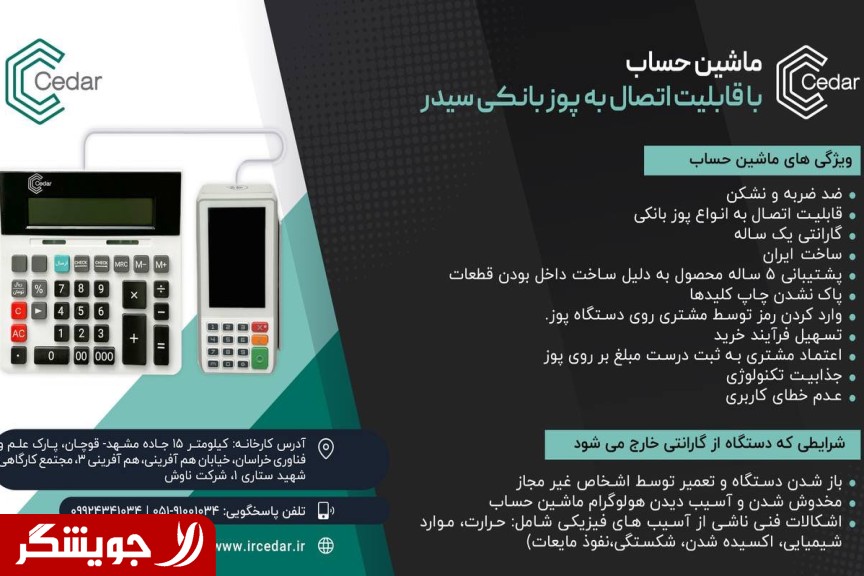ماشین حساب هوشمند سیدر با قابلیت اتصال به کارتخوان بانکی