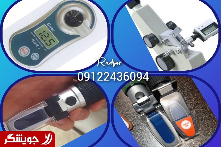 -اساس عملکرد رفرکتومتر چشمی یا دستی: رفرکتومتر چشمی یا رفراکتومتر دستی ابزاری آنالوگ است که براساس سنجش ضریب شکست مایعات مورد استفاده قرار می گیرد و با توجه به زاویه بحرانی اصلی بوسیله لنزهای داخلی و منشورها سایه ای برروی بخش مدرج رفرکتومتر چشمی ایجاد نموده و از بوسیله لنز چشمی مشاهده می گردد و نمونه بین بخش پوشش دهنده روی رفرکتومتر و منشور قرار می گیرد و نور عبوری پس از گذشتن از نمونه و منشور سایه ای را بصورت دو منطقه تاریک و روشن ایجاد نموده که خط حاصل بین این دو قسمت نمایانگر عدد مقدار اندازه گیری شده بوسیله رفرکتومتر می باشد. انواع رفرکتومتر : رفرکتومتر 0 - 32 درصد رفرکتومتر دستی 0-90 درصد رفرکتومتر چشمی 28-62 درصد رفرکتومتر دستی 0-80 درصد رفراکتومتر دستی 58-92 درصد -رفرکتومتر عسل رفراکتومتر چشمی سه ستونی 0 -90 درصد رفرکتومتر دستی 2 ستونه 0 -80 درصد رفراکتومتر ادرار و پروتئین سرم( رفرکتومتر کلینیکال) رفرکتومتر شیر 0 تا 20 درصد رفرکتومتر شوری 0 -100 رفرکتومتر الکل رفرکتومتر رومیزی - رفرکتومتر آبه - رفرکتومتر abbe رفرکتومتر قهوه رفرکتومتر نبات رفرکتومتر رب رفرکتومتر چینی رفرکتومتر تایوانی رفرکتومتر آزمایشگاهی رفرکتومتر دیجیتالی