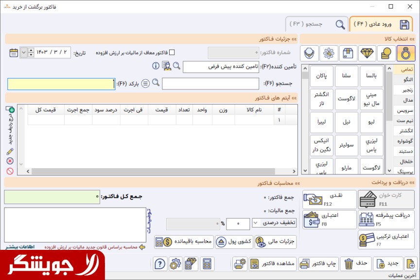 2. اماکن تعلیق فاکتور جاری و ثبت فاکتور جدید