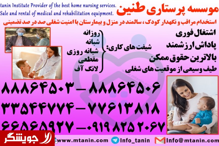مؤسسه ای معتبر جهت گسترش و تکمیل تیم مراقبتی خود از200 نفر بهیار وپرستار خانم وآقا جهت مراقبت ونگهداری از بيمارسالمند ، در بیمارستان با حقوق ومزایای عالی استخدام مینماید.