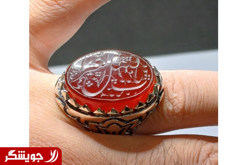 بسم الله الرحمن الرحیم نقره طهران فرجی ♦انگشتر نقره عقیق خوشرنگ طبیعی ♦حکاکی زیبای یا علی اکبر و شهدای کربلا ♦ با امضای رضا میرزا ♦نگین تراش عالی، زیبا، اصل ♦رکاب جوندار و خوش فرم ♦مدل رکاب صفوی ♦ با نگین صددرصد طبیعی ♦ رکاب نقره عیاربالا درحد دستساز ♦سایز_65 ♦وزن:17.5گرم پایین همین آگهی روی گزینه ( همه آگهی های کسب و کار) کلیک بفرمایید