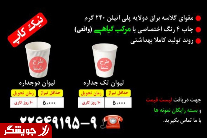 لیوان های کاغذی تبلیغاتی . از جمله آیتم های تبلیغاتی است که این روزها در عرصه تبلیغات یا بهتر بگوییم تشریفات تبلیغاتی مورد توجه برندها و صاحبین محصول و خدمات قرار گرفته است، اما آنچه در این بازار آشفته تبلیغاتی نیک کاپ را از سایر تولید کنندگان لیوان کاغذی مجزا میسازد کیفیت ارزنده محصول و تمرکز قطعی برروی تولید اختصاصی است.متاسفانه استفاده از مرکب صنعتی و روند تولید نامطمئن و خارج از حیطه بهداشت و سلامت، در بین تولیدکنندگان این محصول بشدت رایج است که اگرچه قیمت نازلتری را برای مخاطبین فراهم میآورد ولیکن بروز عوارض غیرقابل جبرانی را در پی خواهد داشت.نیک کاپ با شعار هم سلامتی هم تبلیغاتی استفاده از مرکب گیاهی را در مسیرچاپ و تولید محصول را با لحاظ استانداردهای کیفیت و بهداشت وظیفه انسانی خود میداند و در این راستا سلامتی را بر کاهش نامعقول بهای کالا مقدم میشمارد. با اندکی ارزانتر خریدن سلامتی را به دست فراموشی نسپاریم.