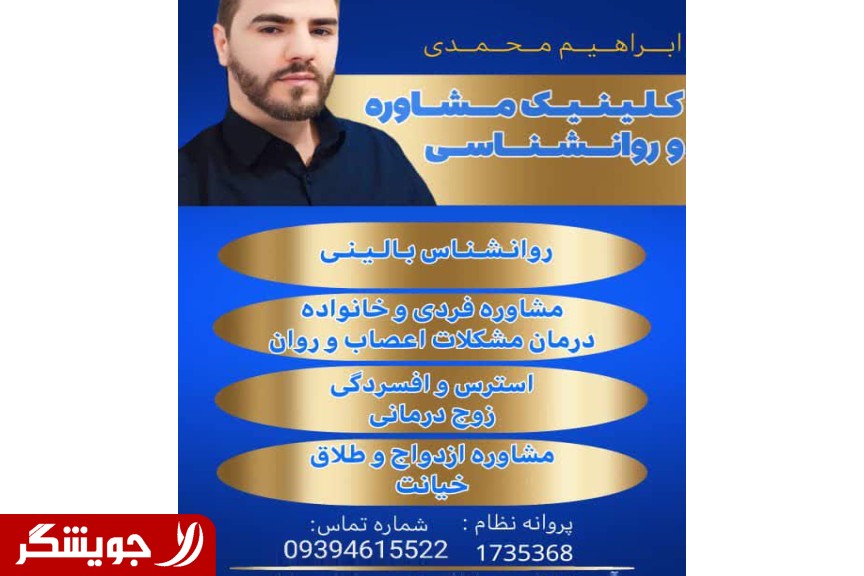 کلینیک روانشناسی و مشاوره ابراهیم محمدی خدمات مشاوره خانواده ازدواج طلاق خیانت جنسی خدمات روان درمانی استرس اضطراب افسردگی مشاوره نوجوان و تحصیلی مشاوره حضوری و تلفنی آنلاین آدرس رباطکریم خیابان کلهر روبروی خانه بهداشت سعادتمندی طبقه بالای داروخانه کلینیک روانشناسی و مشاوره ابراهیم محمدی (در پایین آگهی)
