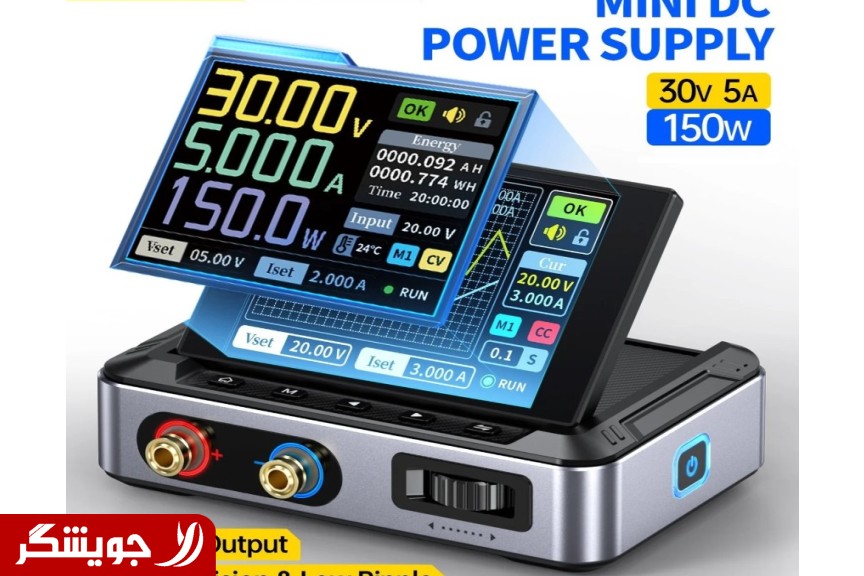 • خروجی دقیق و قدرتمند: منبع تغذیه DC متغیر 150 وات، 30 ولت و 5 آمپر با دقت بالا و ریپل کمتر از 20mV.