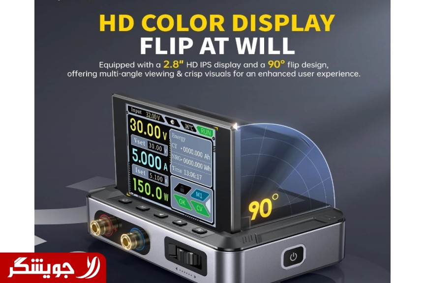 با توان خروجی 150 وات و قابلیت تنظیم دقیق ولتاژ و جریان، این دستگاه برای راه‌اندازی و تست انواع مدارات الکترونیکی، از میکروکنترلرها و سنسورهای حساس گرفته تا موتورهای DC کوچک و ماژول‌های LED، کاملاً مناسب است. نمایشگر رنگی بزرگ آن نه تنها مقادیر عددی را با 4 رقم دقت نشان می‌دهد، بلکه می‌تواند نمودار ولتاژ و جریان را نیز نمایش دهد که برای نظارت بر رفتار بار بسیار مفید است. وجود 8 لایه حفاظتی، ایمنی دستگاه و مدار متصل به آن را در شرایط غیرمنتظره تضمین می‌کند.