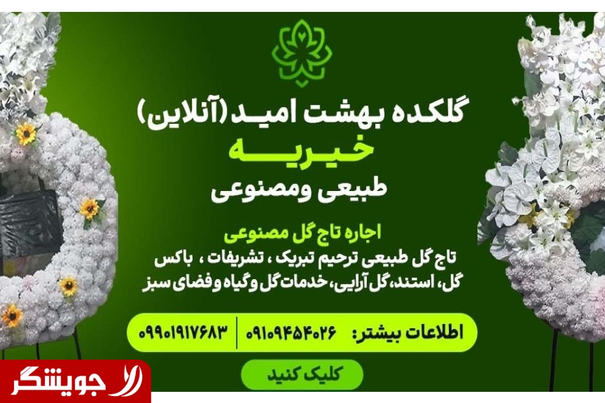 گلکده بهشت امید در طرحی نو و با فکر ایده های خلاقانه جهت مراسم های ترحیم ، عزا، شادی ، عقد ، عروسی ، تولد ، افتتاحیه گل و تاج گل استند ، تندیس ، لوح قاب عکس، گل برای روی قبور