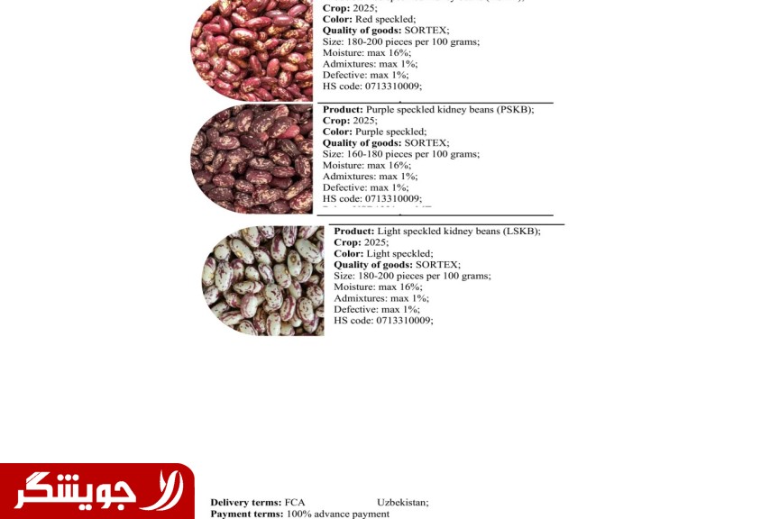 فروش لوبیا چیتی با کیفیت عالی محصول ازبکستان و چین همچنین نخود با اندازه 6/7/8 و عدس سبز و قرمز محصول روسیه و اکراین بصورت پروفورما تحویل یکی از گمرکات کشور.