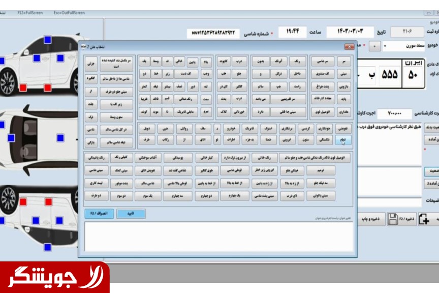 فروش ویژه نرم افزار کارشناسی و تخصصی تشخیص رنگ خودرو کرارماشین بهترین برنامه تشخیص رنگ خودرو در ایران با قیمت بسیار استثنایی همراه با قابلیت های متعدد تنظیم فرم تنظیم رنگ تنظیم سایز تنظیم فونت تنطیم اندازه ها و... نرم افزار کارشناسی تشخیص رنگ خودرو کرار ماشین این برنامه به کاربران اجازه می‌دهد تا اطلاعات خودروی خود را وارد کنند، از جمله شماره شاسی و پلاک، و سپس وضعیت بدنه خودرو را گزارش می‌دهند. این می‌تواند شامل خدشه‌ها، گودی‌ها، رنگ زدگی یا هر نوع آسیب دیگری به بدنه خودرو باشد پس از ورود این اطلاعات، برنامه شما این اطلاعات را در یک برگه چاپ می‌کند. این برگه می‌تواند به عنوان یک گزارش کامل از وضعیت بدنه خودرو استفاده شود، که می‌تواند برای تعمیرگران مفید باشد تا بتوانند به سرعت مشکلات را شناسایی و رفع کنند این برنامه می‌تواند به صورت قابل توجهی زمان و هزینه تعمیرات خودرو را کاهش دهد، زیرا تعمیرگران می‌توانند به سرعت به ریشه مشکل برسند بدون اینکه نیاز به انجام یک تشخیص کامل داشته باشند. همچنین، این برنامه می‌تواند به کاربران کمک کند تا بیشتر در مورد خودروی خود بدانند و از وضعیت آن آگاه باشند. این برنامه می‌تواند برای کاربرانی که می‌خواهند خودروی خود را برای فروش آماده کنند یا برای کسانی که می‌خواهند خودروی دست دوم خریداری کنند، بسیار مفید باشد ویدیو برنامه در آپارات https://www.aparat.com/v/ejh5x71