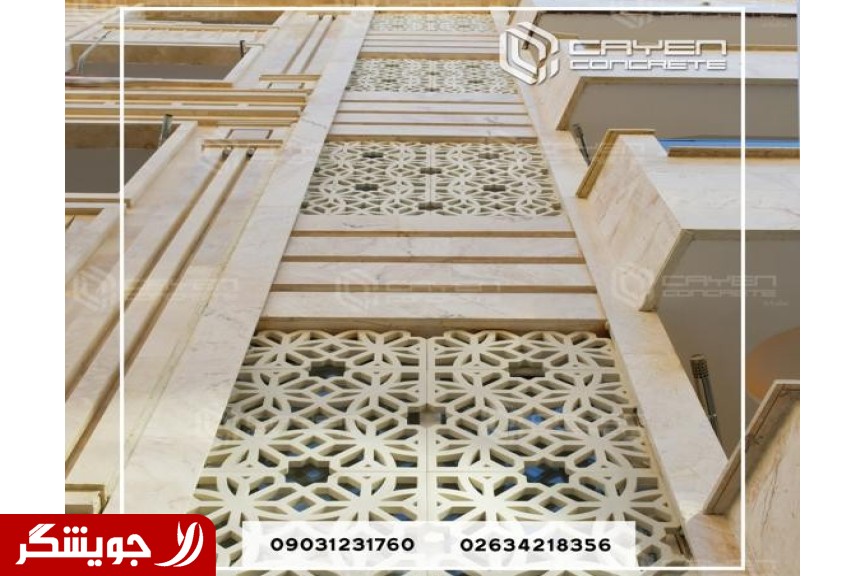 اگه برای نمای ساختمونتون دنبال یه متریال خاص و متفاوت هستین که بتونید توی هر شرایط آب و هوایی ازش استفاده کنید قطعات مشبک بتنی کایِن همون موردی هست که فقط یه بار میخرید و سالها ازش استفاده می کنید. قطعات کایِن از بتن جی.آر.سی تولید میشه که امکان این رو به شما میده هر طرح با هر ابعادی براتون به راحتی حاضر بشه.