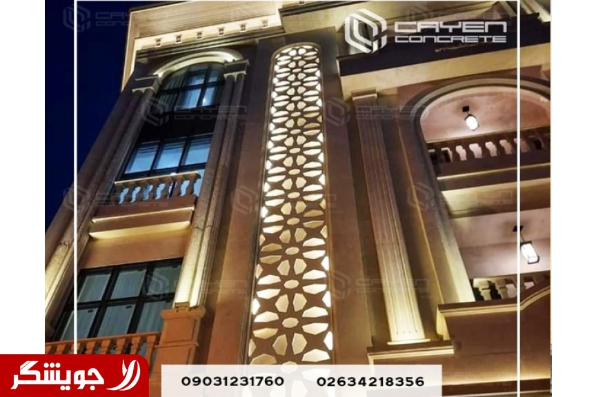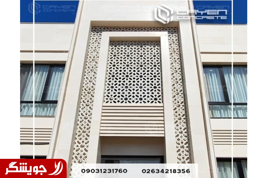 اگه برای نمای ساختمونتون دنبال یه متریال خاص و متفاوت هستین که بتونید توی هر شرایط آب و هوایی ازش استفاده کنید قطعات مشبک بتنی کایِن همون موردی هست که فقط یه بار میخرید و سالها ازش استفاده می کنید. قطعات کایِن از بتن جی.آر.سی تولید میشه که امکان این رو به شما میده هر طرح با هر ابعادی براتون به راحتی حاضر بشه. کافیه بهمون زنگ بزنید و اون طرحی که همیشه دوست داشتید رو برای ساختمون تون سفارش بدید.