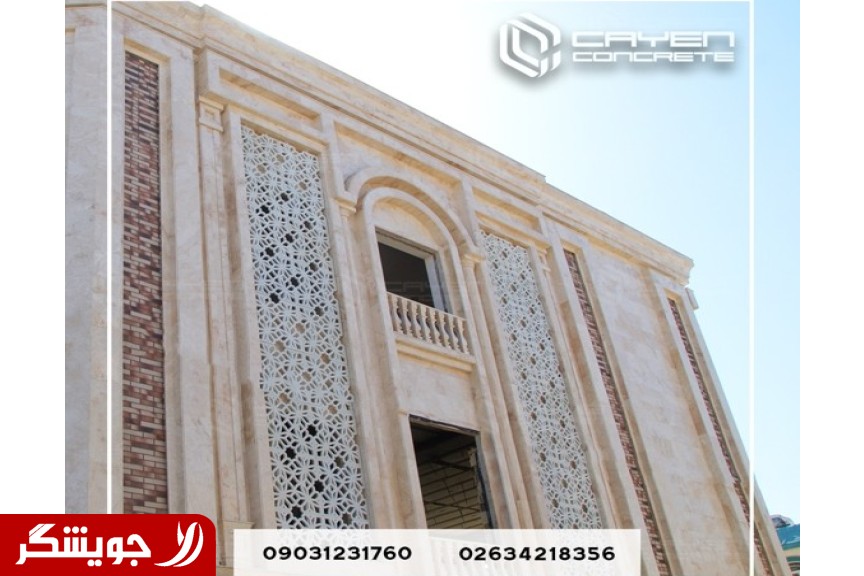 اگه برای نمای ساختمونتون دنبال یه متریال خاص و متفاوت هستین که بتونید توی هر شرایط آب و هوایی ازش استفاده کنید قطعات مشبک بتنی کایِن همون موردی هست که فقط یه بار میخرید و سالها ازش استفاده می کنید. قطعات کایِن از بتن جی.آر.سی تولید میشه که امکان این رو به شما میده هر طرح با هر ابعادی براتون به راحتی حاضر بشه. کافیه بهمون زنگ بزنید و اون طرحی که همیشه دوست داشتید رو برای ساختمون تون سفارش بدید.