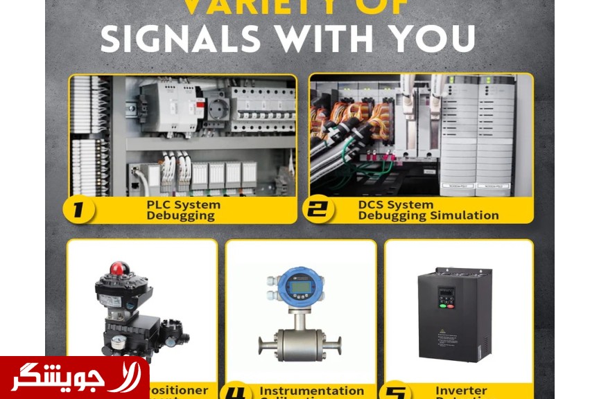 • آزمایش و کالیبراسیون ابزارها: چک و تنظیم ترنسمیترهای فشار/دما/فلو با سیگنال‌های مرجع پایدار—بدون تجهیزات حجیم آزمایشگاهی.