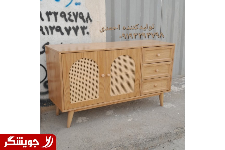 میزکنسول دودرب کشودار خودرنگ حصیری