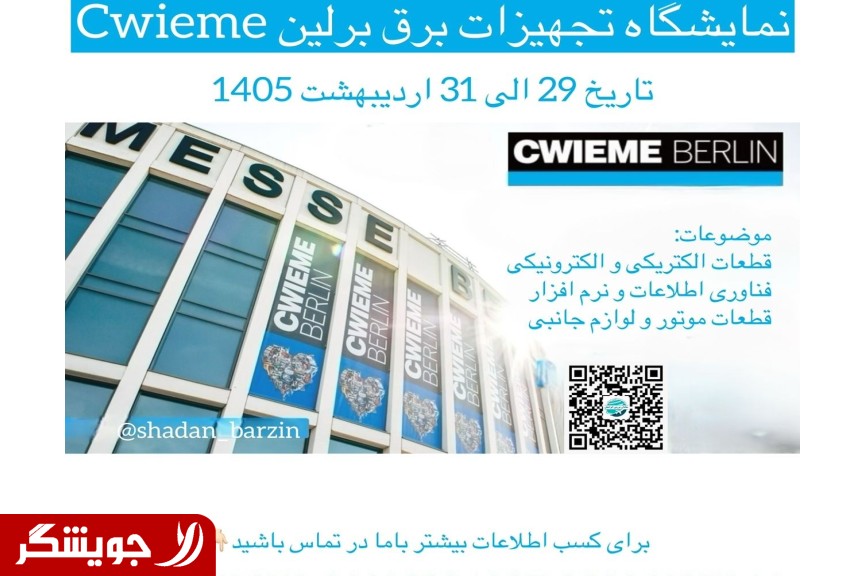 تور نمایشگاه تجهیزات برق برلین Cwieme 2026 نمایشگاه برق آلمان Cwieme که در تاریخ 19 الی 21 می 2026 مصادف با 29 الی 31 اردیبهشت 1405 در شهر برلین آلمان برگزار میشود. موضوعات: اجزاء الکترومکانیکی قطعات الکتریکی و الکترونیکی قطعات و لوازم جانبی ترانسفورماتور اجزای سیستم انتقال قدرت الکتریکی فناوری اطلاعات و نرم افزار قطعات موتور و لوازم جانبی سایر ماشین آلات و سیستم های تولیدی مواد عایق و محافظ مرتبط با نمایشگاه تست و اندازه گیری کیفیت محصولات مرتبط با نمایشگاه وب سایت نمایشگاه: http://www.coilwindingexpo.com/berlin برای کسب اطلاعات بیشتر با ما در تماس باشید (در پایین آگهی) (در پایین آگهی) (در پایین آگهی)