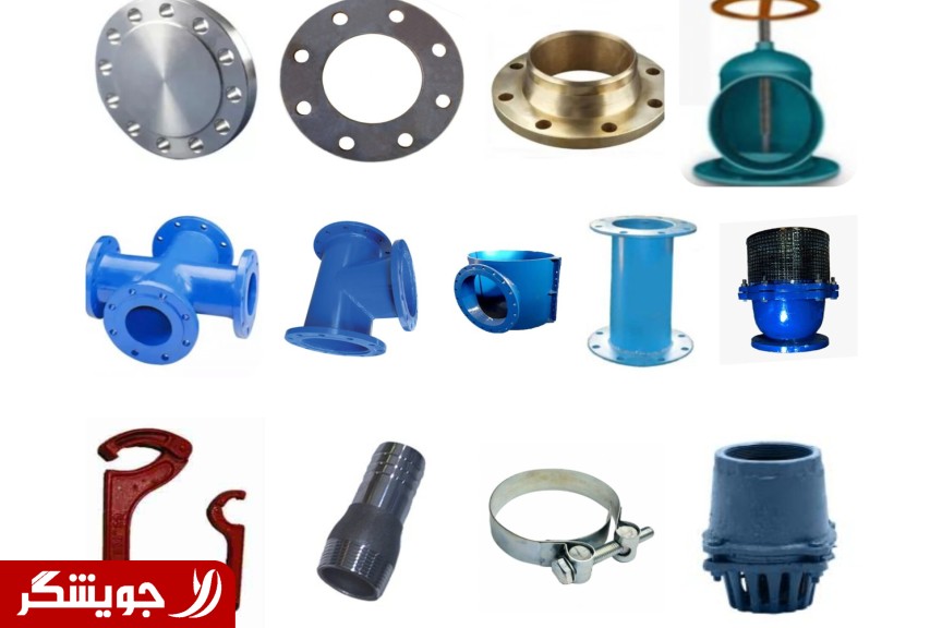 شرکت کشتینه تولیدکننده انواع اتصالات فلزی( آهنی، چدنی، برنجی، آلمینیومی) ?اتصالات آهني ?سراهی ساده و تبدیلی ?زانو ساده و تبدیلی ?رابط ساده و تبدیلی ?چهار راه ساده و تبدیلی ?رینگ ( رینگ فابریک، جوشی) ?فلنچ (دنده ای، تخت، جوشی، کور) ?کمربند ?هیدروسیکلون ?تانک کود ?آچار چدنی ?انواع آبریزها (بدون ناف،قابل تعمیر، کپ چدنی، کپ آهنی) ?سوپاپ (دنده ای و فلنچدار) ?اتصالات بارانی (شیر خودکار چدنی و برنجی، رایزر، بست و قلاب، سه پایه آب‌پاش، کلید شیر خودکار) ?کلکتور ( دو خروجی و چهار خروجی)
