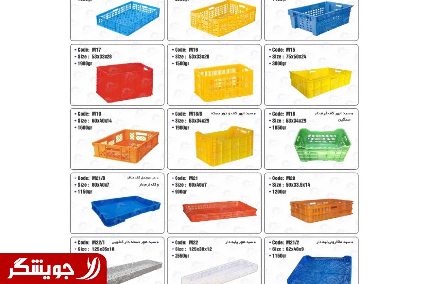 شرکت قوام سبد تولید کننده انواع سبد پتروشیمی ماهی و میگو با بهترین متریال پتروشیمی می باشد. سبد ها نشکن و منعطف می باشند و در ابعاد و وزن های متنوع تولید می شوند از قبیل باسکت ماهی 20 کیلویی با ابعاد 174060 با ظرفیت 20 کیلوگرم، باسکت شیلات 40 کیلویی با ابعاد 314060 با ظرفیت 40 کیلو گرم، باسکت 60 کیلویی با ابعاد 384363 با ظرفیت 60کیلوگرم.