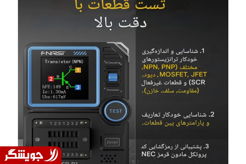 تستر قطعات FNIRSI LCR-P1 یک ابزار اندازهگیری دقیق و چندکاره است که به طور اختصاصی برای مهندسان الکترونیک، تکنسینهای تعمیرات و علاقهمندان به طراحی مدار توسعه یافته است. این دستگاه با تحلیل سریع قطعات نیمههادی مانند ترانزیستورهای BJT، دیودها و انواع فتها (FET)، اطلاعات جامعی از وضعیت سلامت و مشخصات فنی قطعه را در اختیار کاربر قرار میدهد.