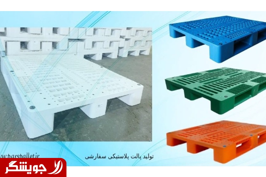 پالت پلاستیکی سفارشی در رنگ های سفید ، سبز ، مشکی و... در ابعاد استاندارد 100*120 قابل تولید است. حداقل سفارش 300 عدد