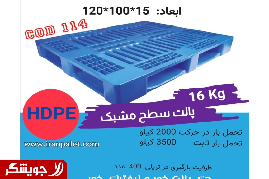 کاربرد پالت پلاستیکی کد 114 در کلیه صنایع غذایی - صنعتی - شیمیایی و منسوجات و ارسال کالاهای صادراتی .