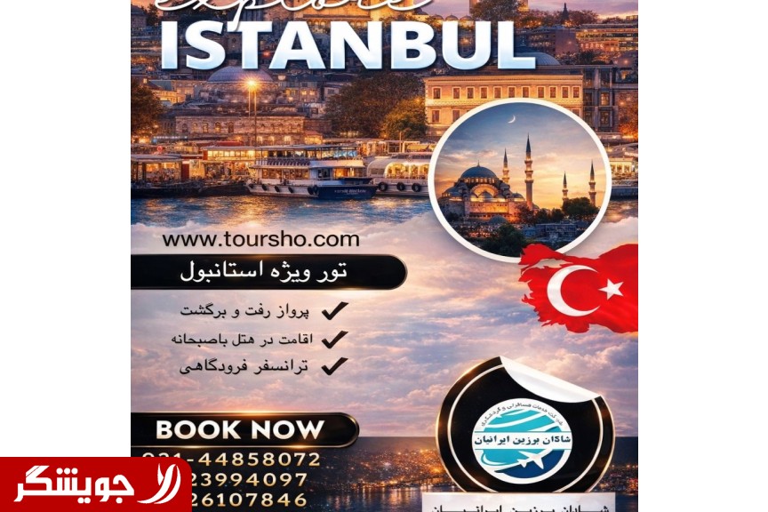 تور استانبول ویژه بهمن و اسفندماه 1404 آفر ویژه تور استانبول برای 15 ثبت نام اول #تور_استانبول شامل خدمات: بلیت پرواز رفت و برگشت به ساعت دلخواه مسافرین رزرو هتل در لوکیشن های مختلف استانبول اقامت در هتل با صبحانه ترانسفر رفت و برگشت فرودگاهی لیدر، گشت شهری و بیمه مسافرتی برای کسب اطلاعات بیشتر با ما در تماس باشید (در پایین آگهی) (در پایین آگهی) (در پایین آگهی) (در پایین آگهی)